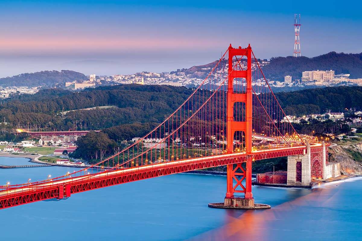 Café da manhã americano. Pela manhã iniciaremos a visita a esta bela cidade, incluindo o centro comercial e financeiro, com paradas no Civic Center, Twin Peaks, Golden Gate Park, a famosa ponte Golden Gate e terminando em Fisherman`s Wharf.